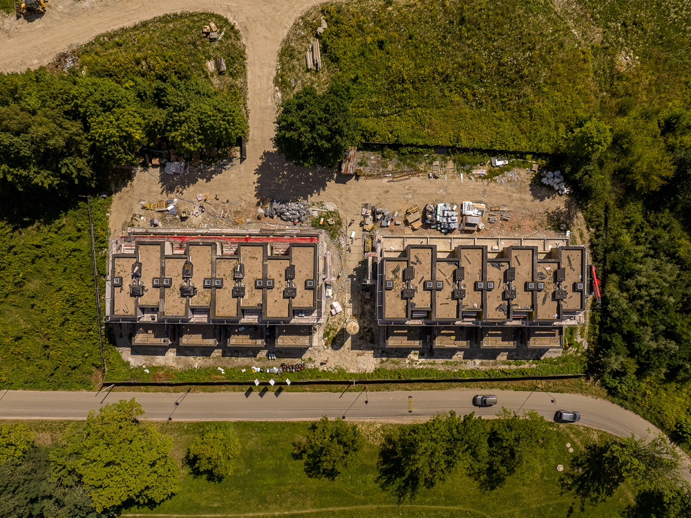 Parkowe Kliny to kameralna inwestycja obejmująca dwa segmenty po 8 domów w zabudowie szeregowej, z ekspozycją wschodnio-zachodnią, zapewniającą doskonałe doświetlenie wnętrz. Każdy dom o powierzchni ok. 145 m² posiada garaż oraz dodatkowe miejsce postojowe na podjeździe. Środkowe domy mają przytulne ogródki o powierzchni ok. 20 m², natomiast domy skrajne oferują przestronne działki od 197 do 230 m², gwarantując dodatkową przestrzeń na odpoczynek i rekreację.