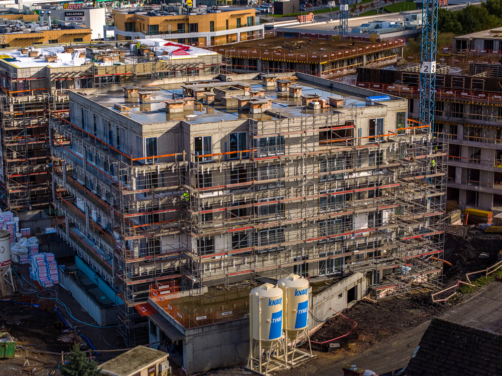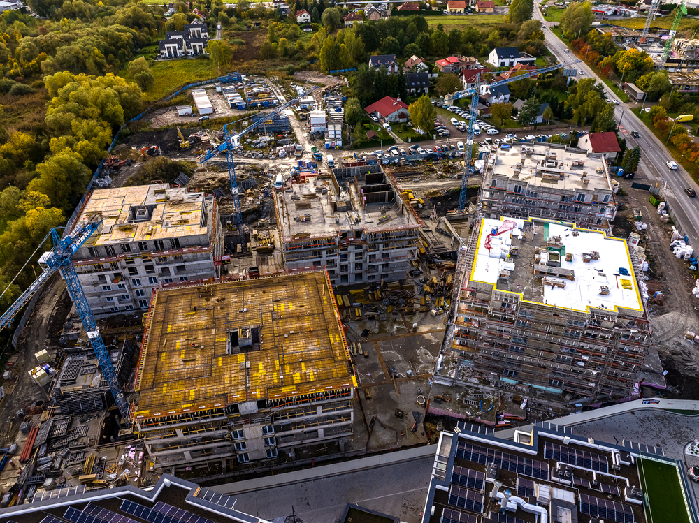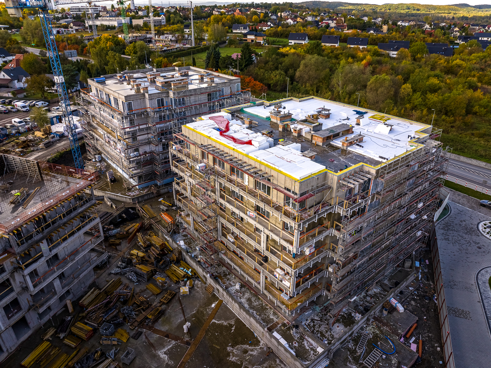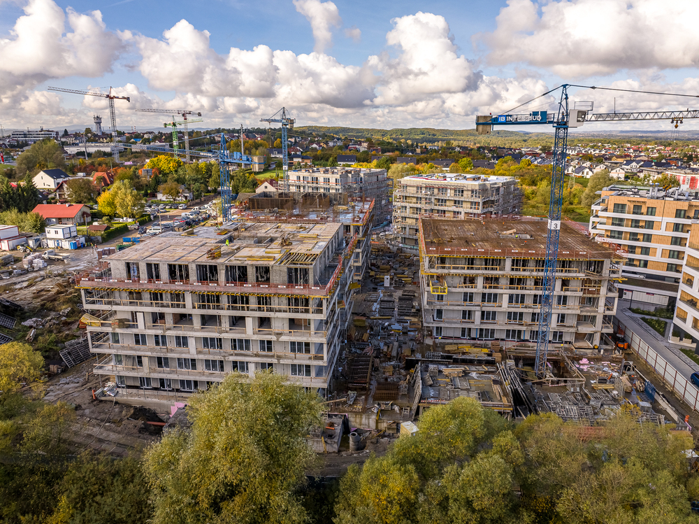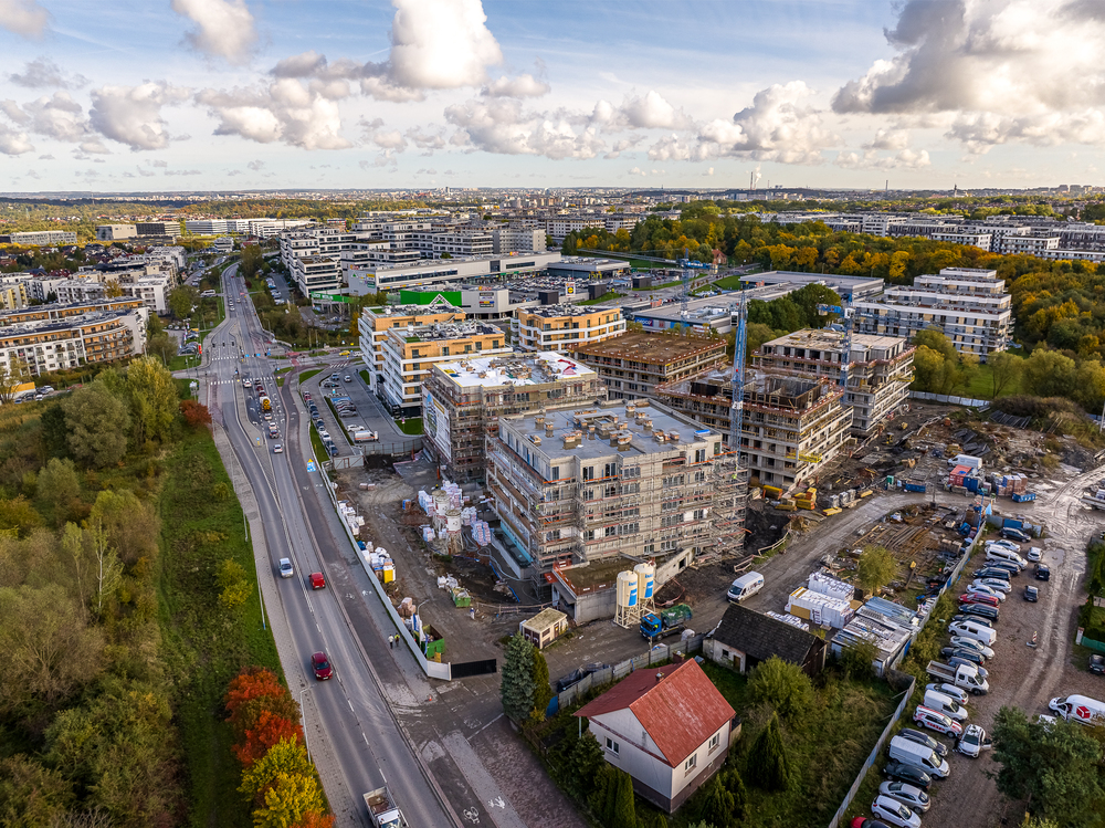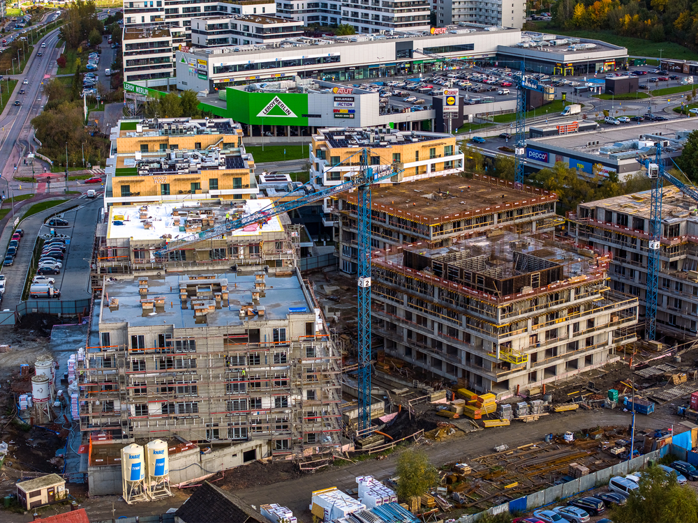 - 5 budynków mieszkalnych z garażami podziemnymi,