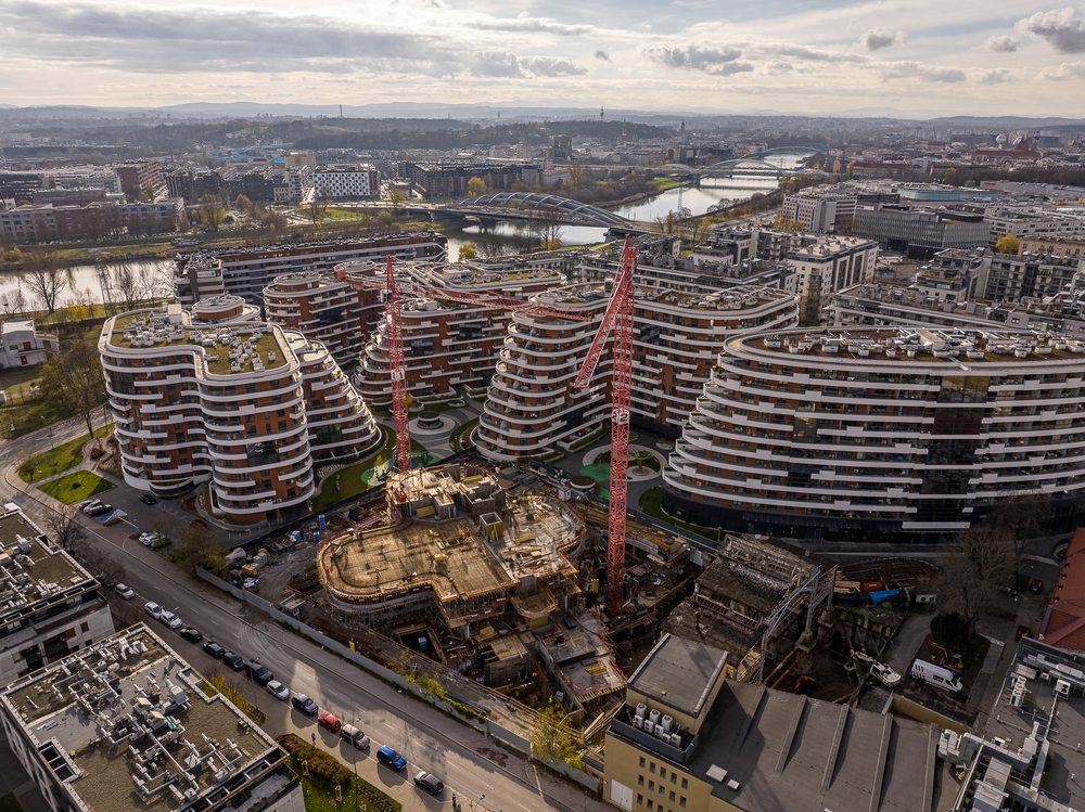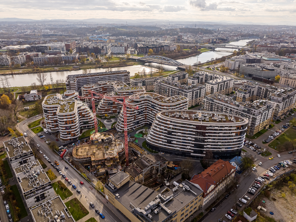 • na najwyższych kondygnacjach apartamenty z tarasami i bezpośrednim widokiem na Wisłę,