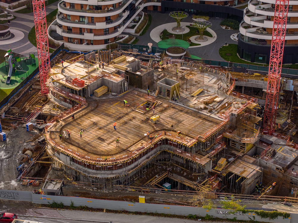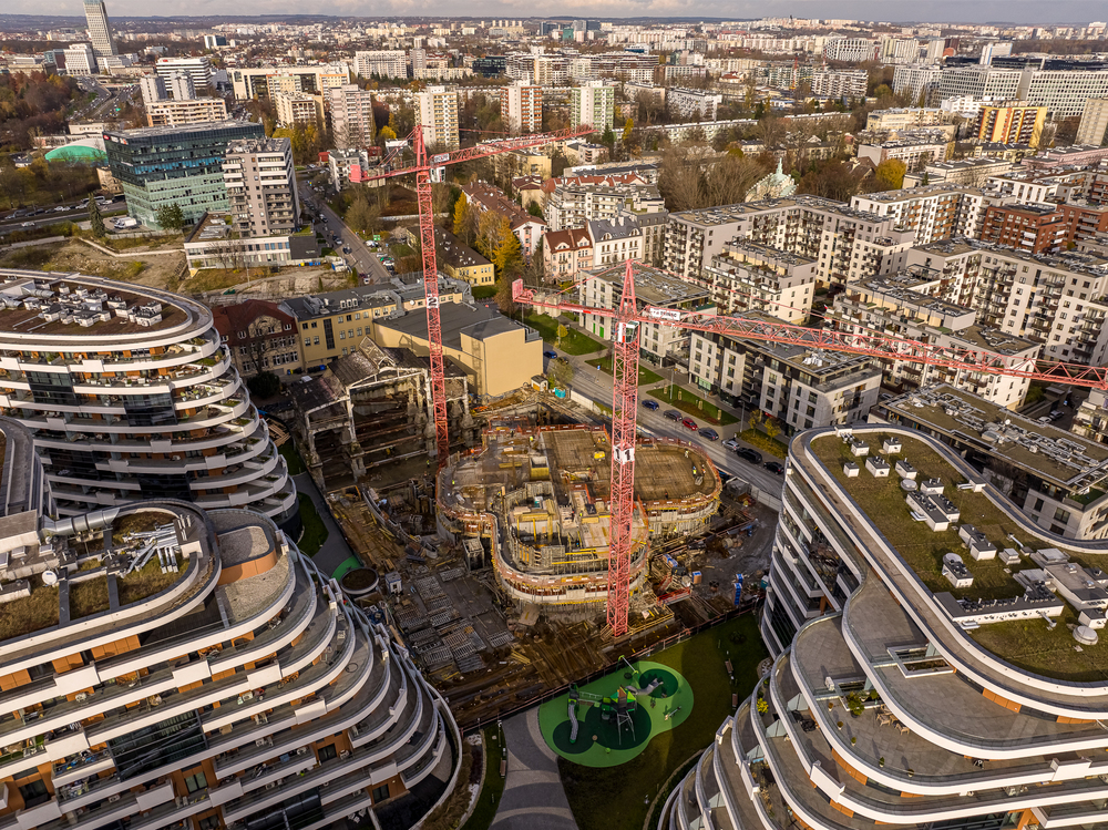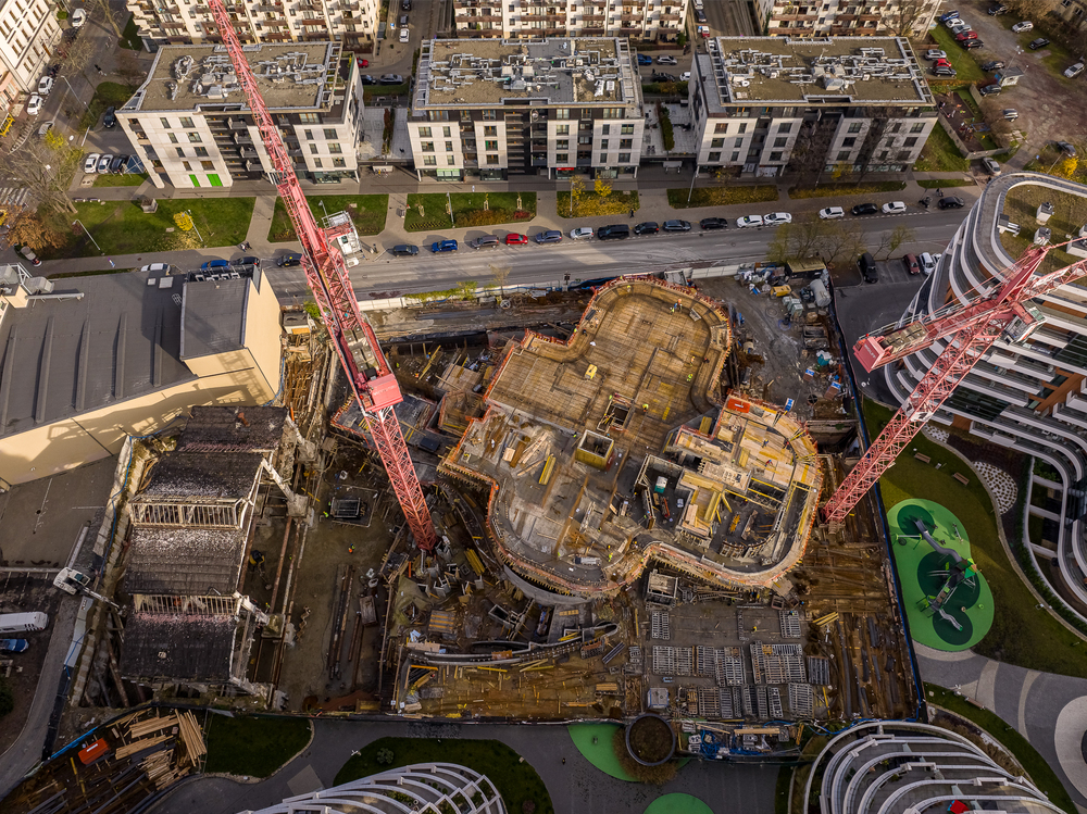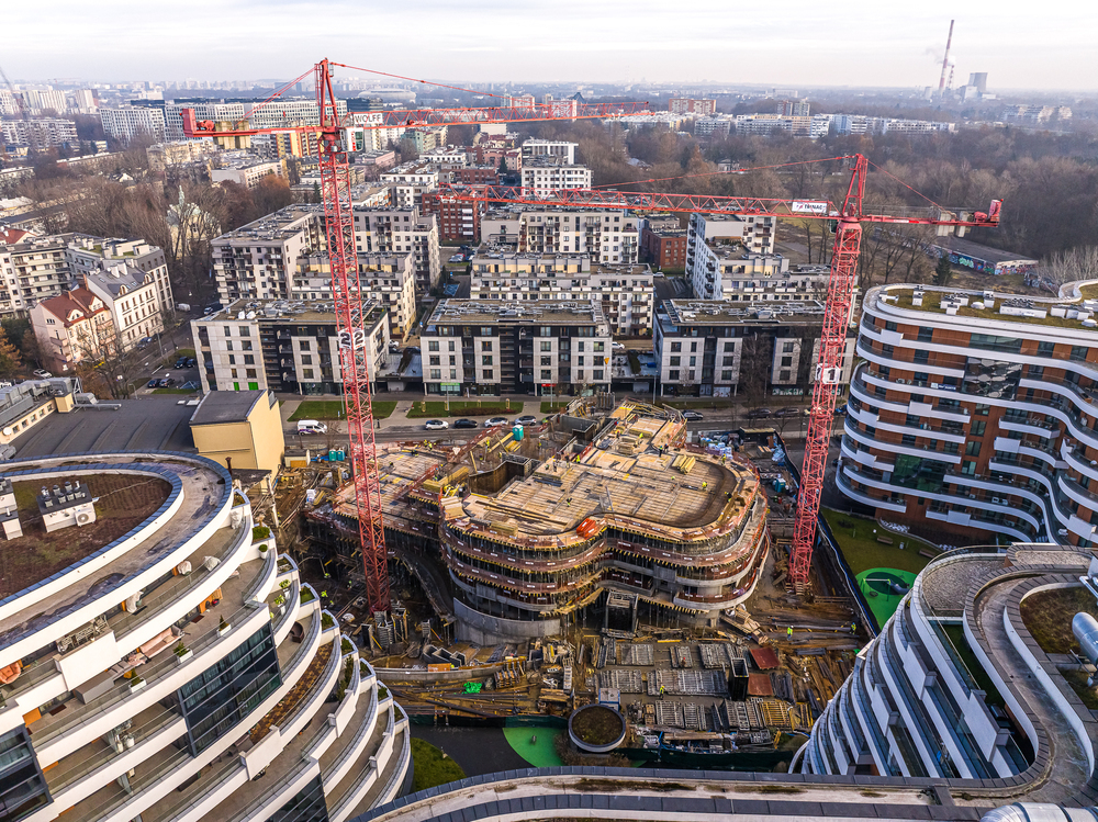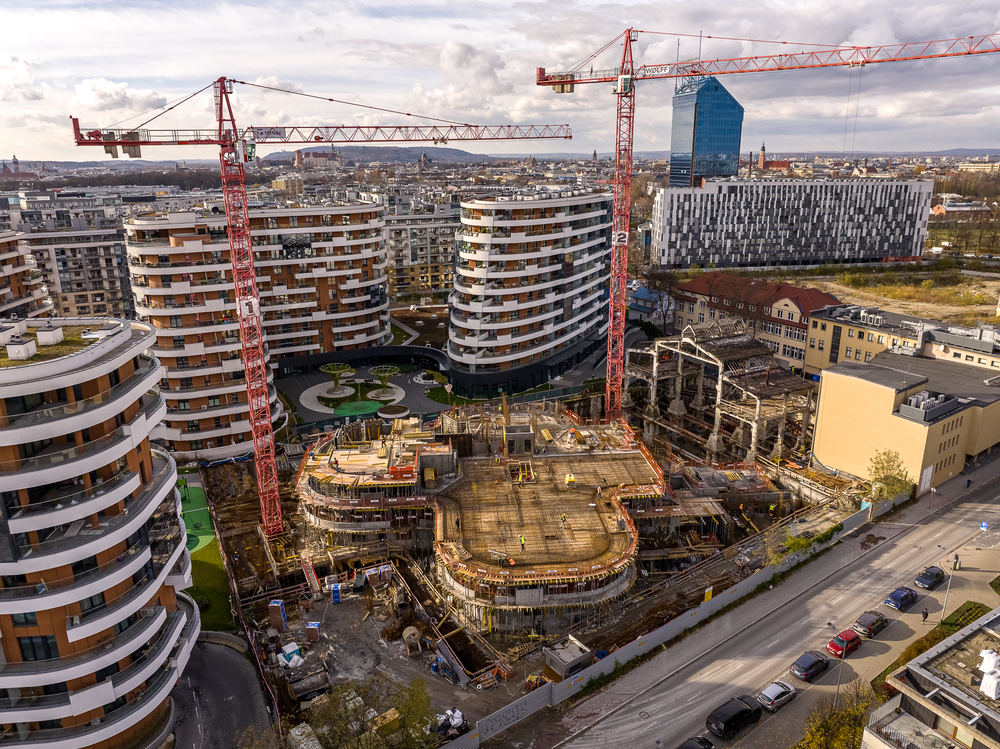 • roboty żelbetowe do poziomu czwartego piętra 80%