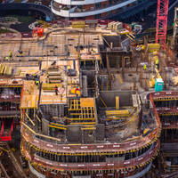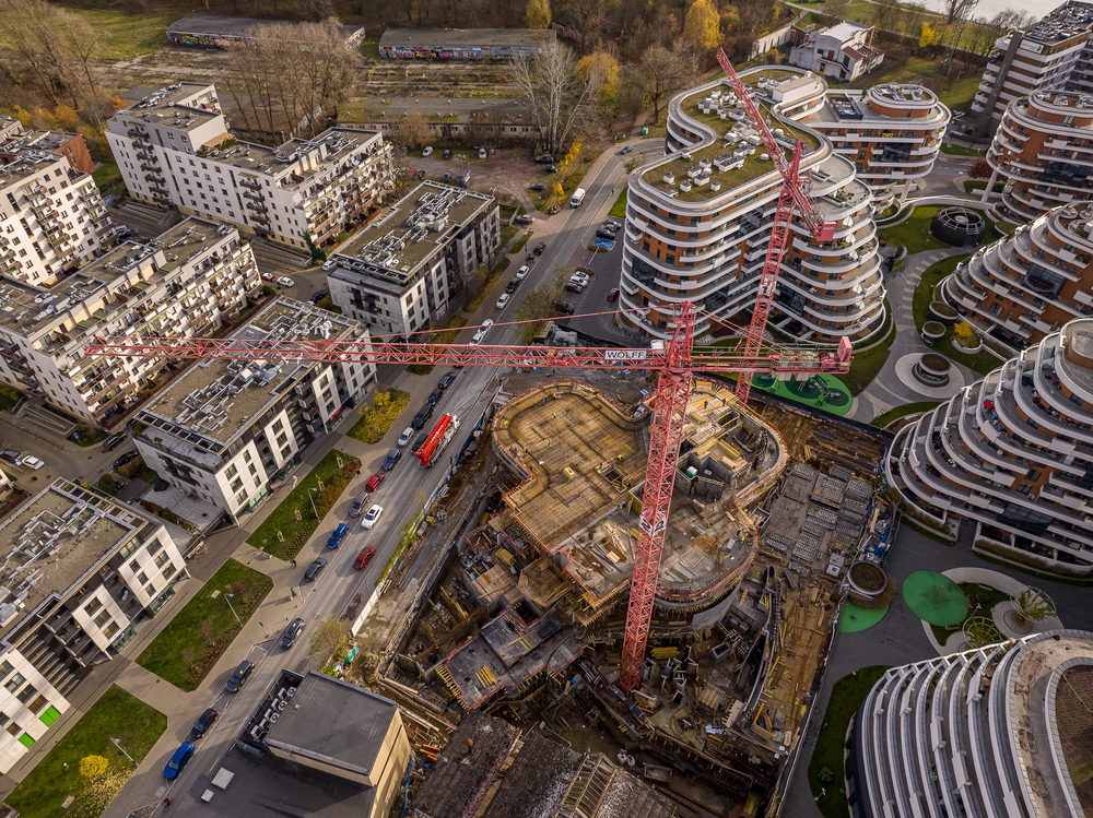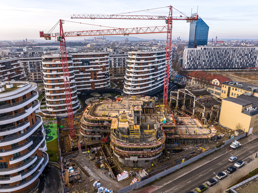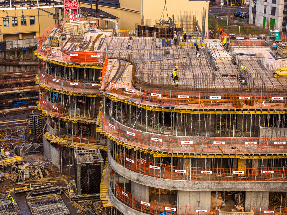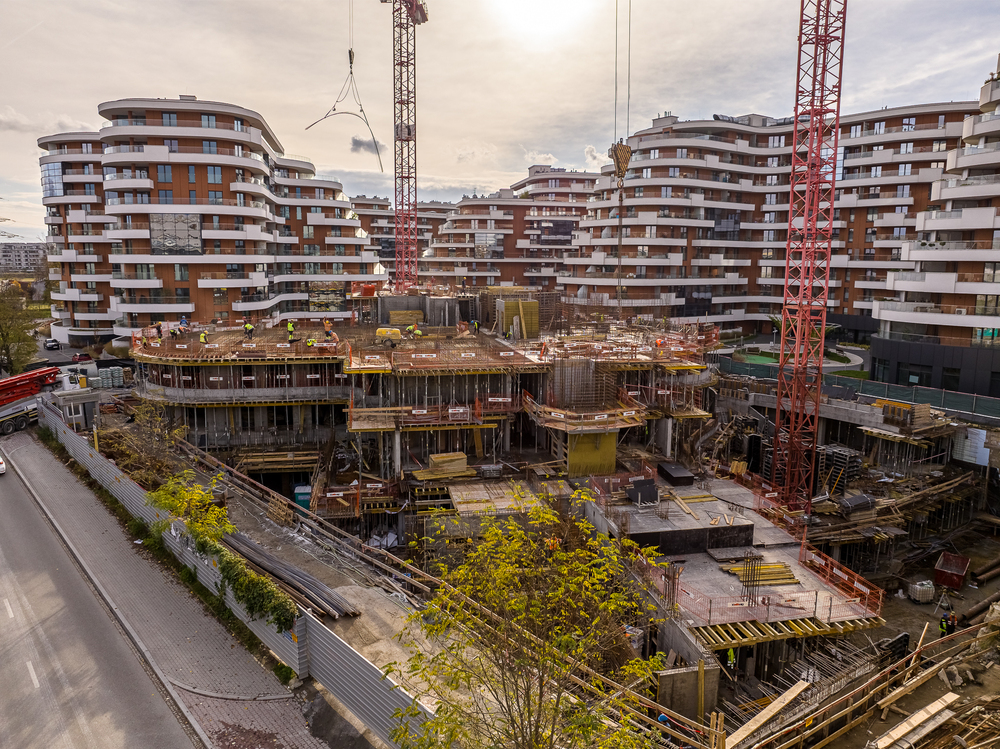 Roboty żelbetowe - 70% (na poziomie czwartego piętra)